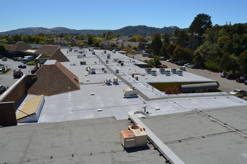 Our commercial roofing clients include Bay Area auto dealerships, hotels, churches, hospitals, healthcare facilities, retail centers, restaurants, shopping malls, wineries, office complexes, condominiums, apartments, high-rise buildings, banks, industrial buildings, warehouses, manufacturing facilities, food manufacturing facilities, schools, universities, government buildings and more in Marin County, Sonoma County, San Francisco, and Napa.ย