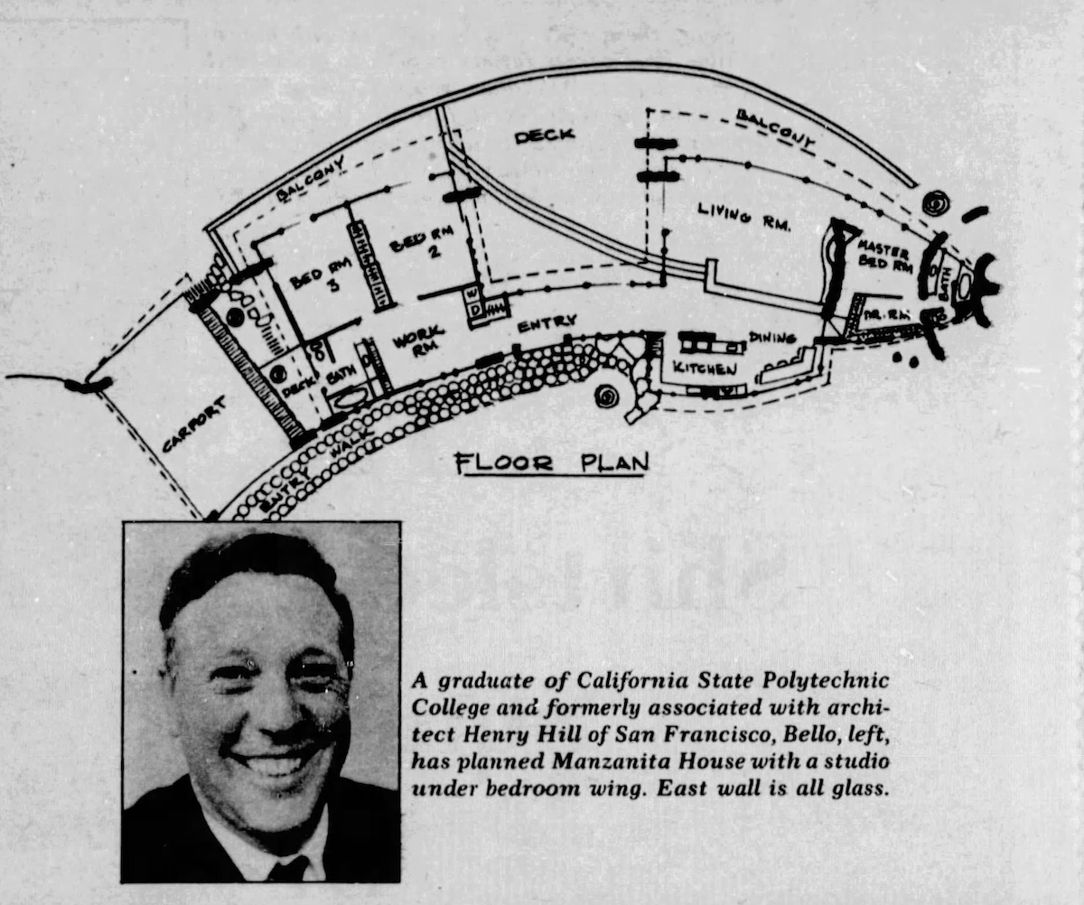 Bello, a disciple of Frank Lloyd Wright, believes that “A house must grow in, around, and out of the landscape.” With this philosophy in mind, he designed and built the Manzanita House in 1965. In addition to the distinctive parabolic roof, a design feature Mr. Bello incorporated into many of his homes, the Manzanita House boasts an exterior structure crafted from stone, stucco, glass, and rough cedar poles. The home design seamlessly integrates into the hillside above Rincon Valley in Santa Rosa, California.