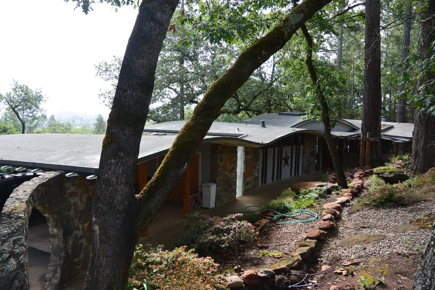In 1968, the Bello family purchased 400 acres of land in Mendocino County, considered worthless at the time due to lumber companies having clear-cut 96% of the old-growth redwoods, which once stood at 280 feet tall and were estimated to be 1,000 years old. Charles Bello built multiple homes on this land using salvaged materials, incorporating parabolic roofs designed to blend into the forest. Bello considers these homes as living sculptures, existing in harmony with nature and thoughtfully designed to complement the surrounding environment.