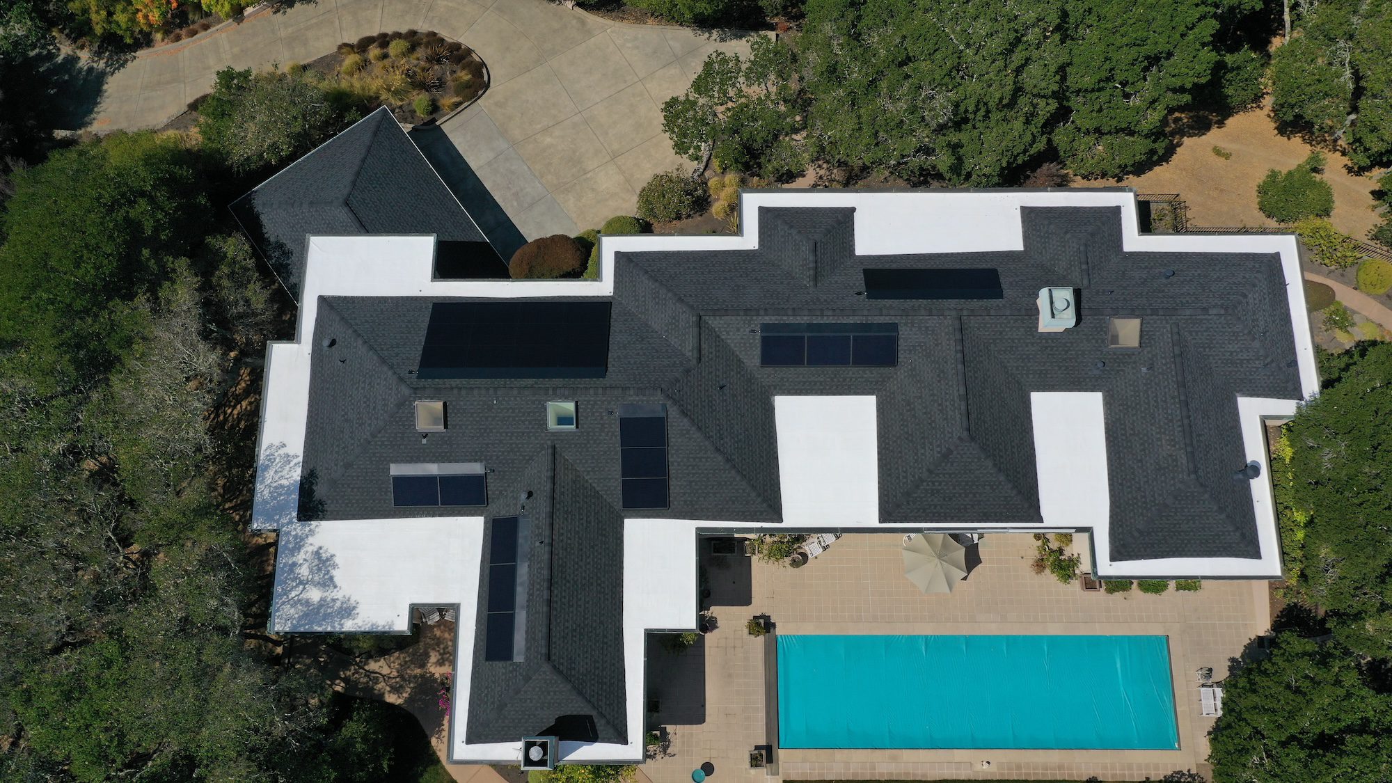 For this re-roofing project in the Lucas Valley neighborhood of San Rafael in Marin County, Wedge Roofing installed a GAF Timberline Solar HDZ Lifetime Shingle Roofing System. All work was accomplished while carefully preserving the stunning copper eaves on this beautiful home. As a GAF Master Elite Roofing and Solar Contractor, this roof qualified for GAF’s Silver Pledge Warranty. Integrated solar roofing from GAF Energy incorporates solar technology into traditional roofing materials.
