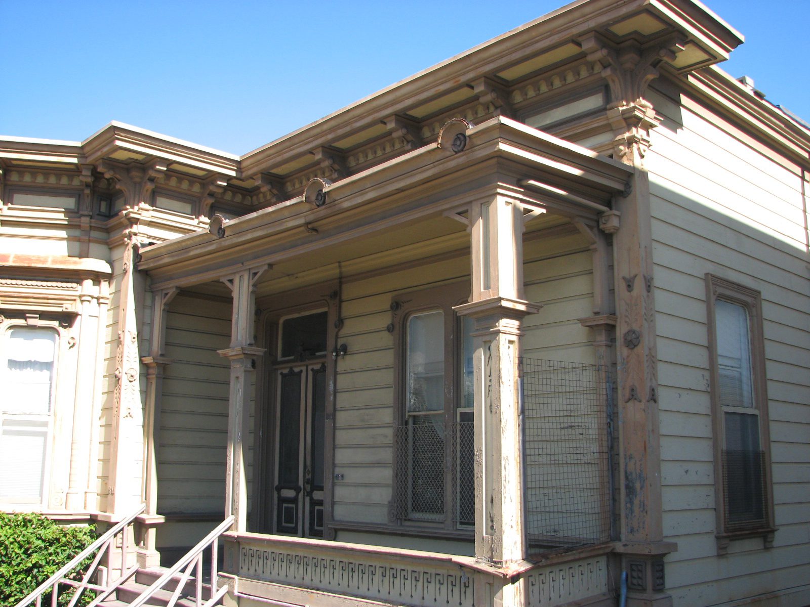 For his own home built in 1892, Geilfuss designed this Italianate-style Victorian Townhouse in San Franciscoโs Mission District. Remarkably, the house retains the architectโs signature elements, delicate embellishments carved into the redwood corner ends and porch posts.
