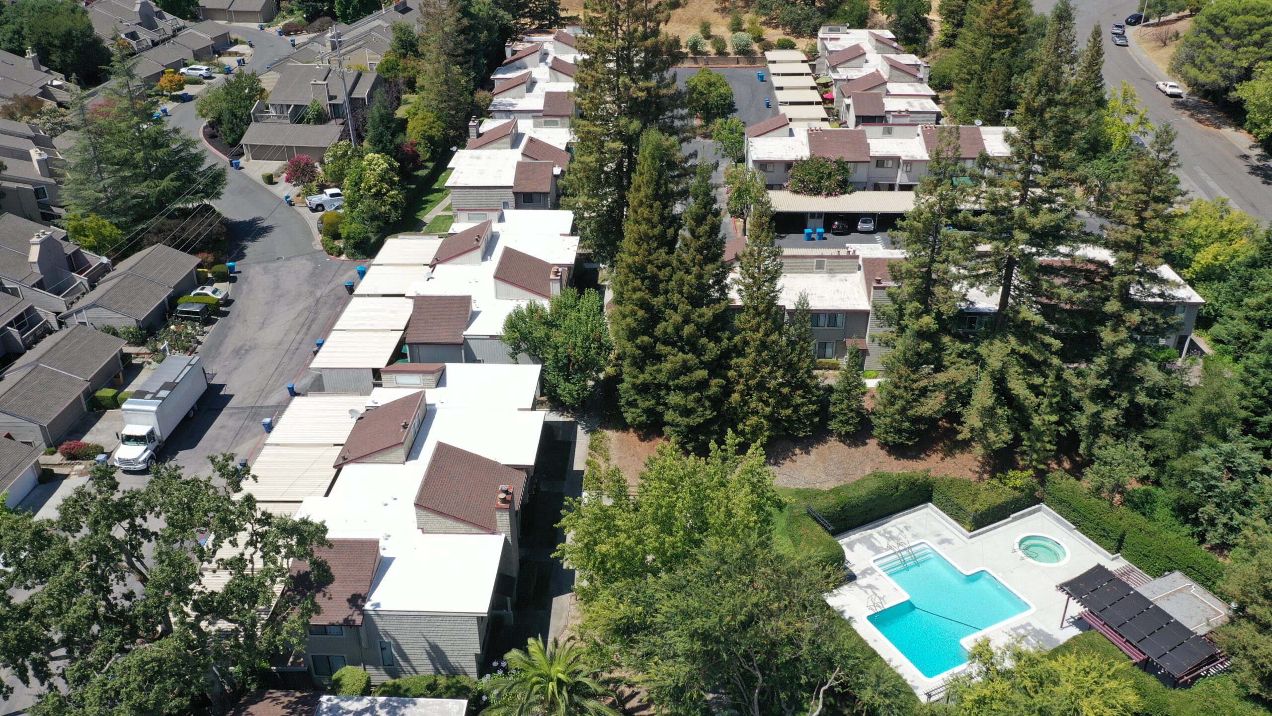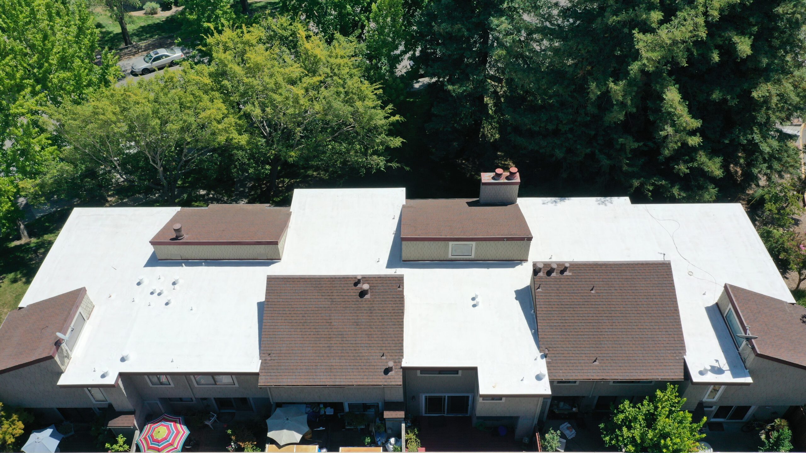 Marin County Homeowners Association Roofing Project: Re-roofing of existing roofs on condominiums in Novato, CA with insulated spray foam roofs covered with silicone roof coatings.