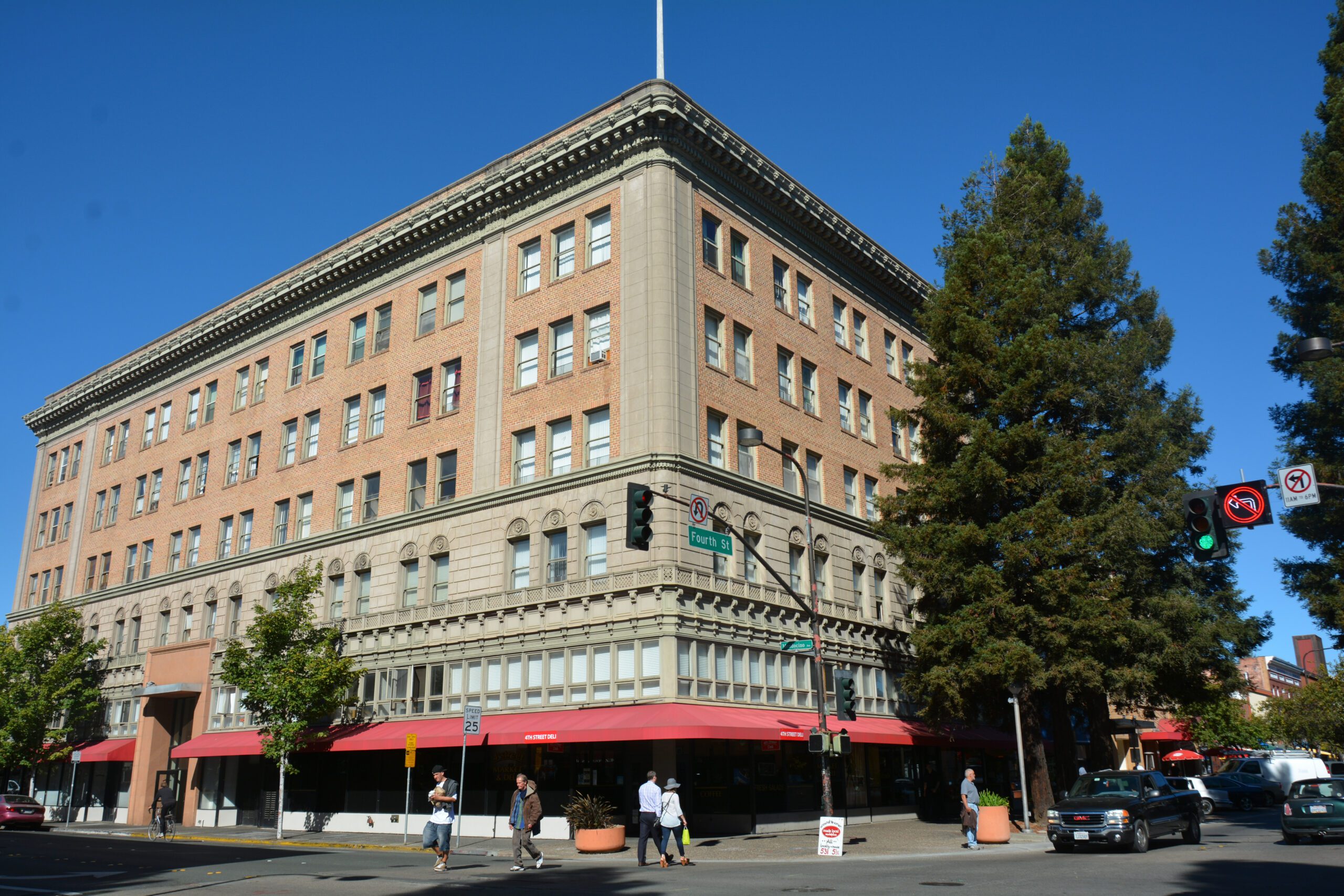 Roof Coating Santa Rosa, CA: Built in 1921, the six-story Rosenberg building at the corner of Fourth Street and Mendocino Avenue in Santa Rosaโs Courthouse Square was designed by San Francisco architect Sylvain Schanittacher. ย The elegant Renaissance Revival style structure features stone masonry with symmetrical facades in a clear definition of floors and a flat roof covered by an elaborately detailed overhanging cornice. Read More Here.ย